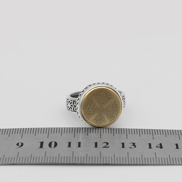 انگشتر حرز امام جواد (ع) نقره مردانه و زنانه طرح دایره ای چهارقل + تربت امام حسین (ع)