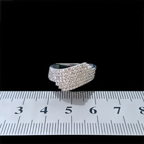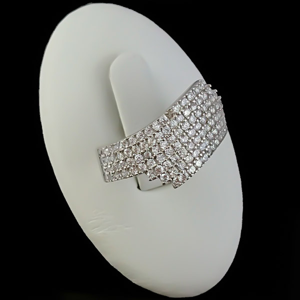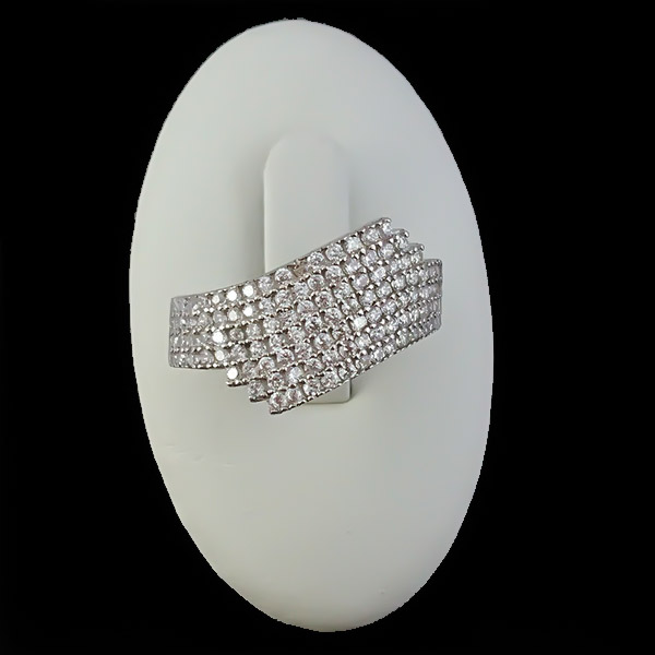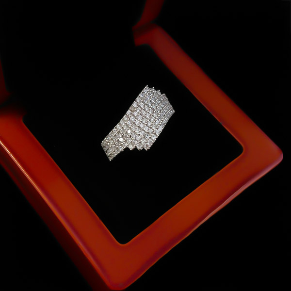 حلقه نقره زنانه طرح جواهری عفیفه از خاص ترین نمونه انگشتر های موجود می باشد که در سبک کار های مدرن امروزی و شیک ساخته شده و بسیار مشابه محصولات طلاسفید کار شده است. این محصول به وسیله رادیوم آبکاری شده تا درخشش و جلا خود را در استفاده طولانی مدت حفظ کند و سیاه و کدر نشود. جلوه مجلل و درخشش خیره کننده آن به دلیل استفاده از نگین های ریز اتمی در چند ردیف بر روی انگشتر می باشد که با چیدمان منظمی با تعداد و تراکم بالا در کنار یکدیگر قرار گرفته اند. این محصول از نقره با عیار ۹۲۵ ساخته شده است. این انگشتر در اندازه های مختلف قابل سایز شدن می باشد.