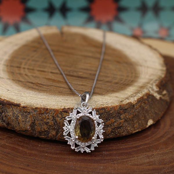 گردنبند الکساندریت الماس تراش نقره زنانه طرح شکوفه