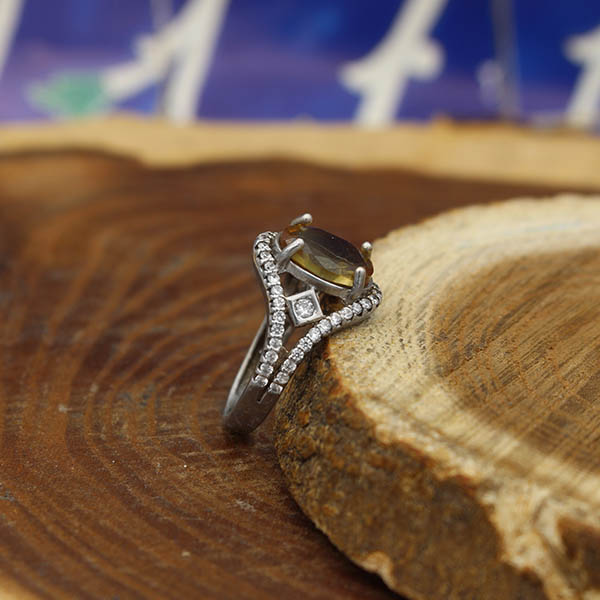 انگشتر الکساندریت الماس تراش نقره زنانه طرح رز
