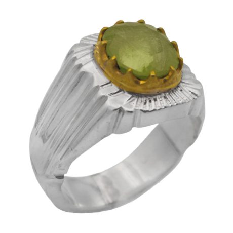 انگشتر زبرجد الماس تراش نقره مردانه دست ساز طرح سرمد + ۴ قطعه برلیان