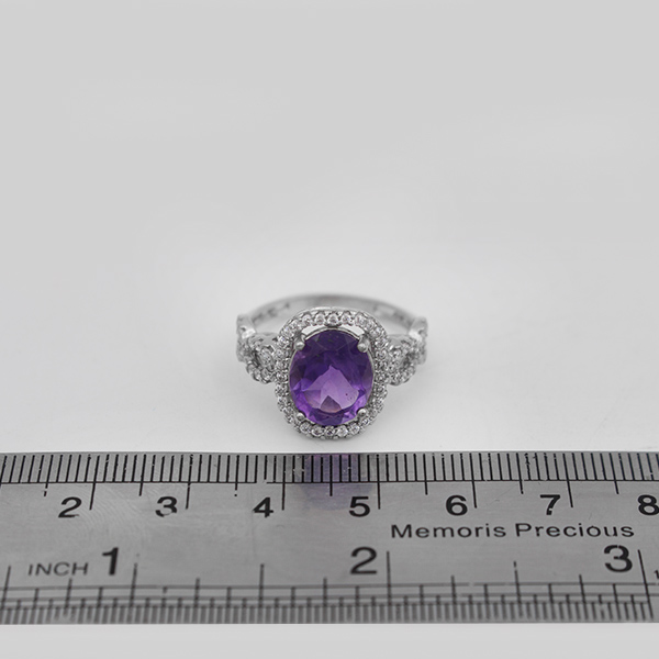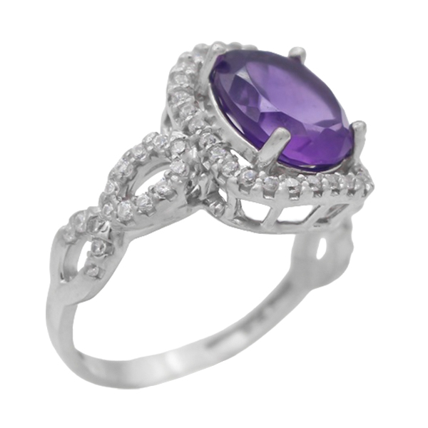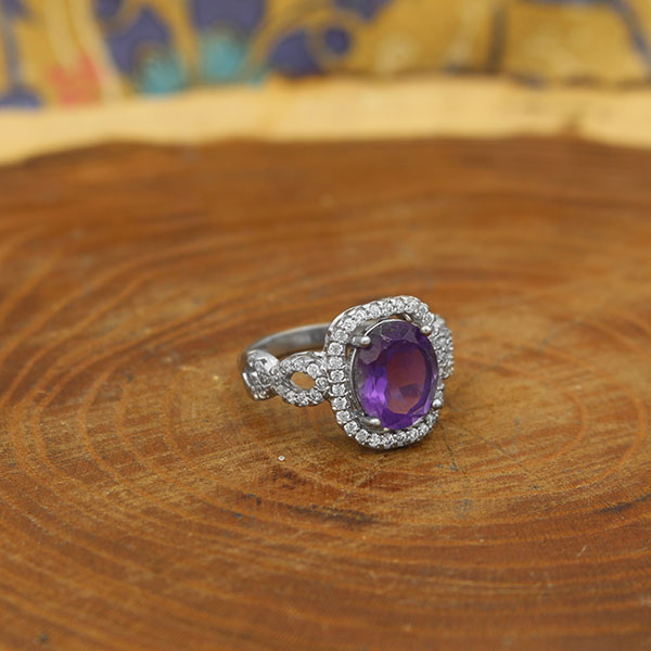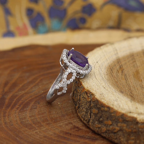 انگشتر آمیتیست الماس تراش نقره زنانه طرح ارغوان