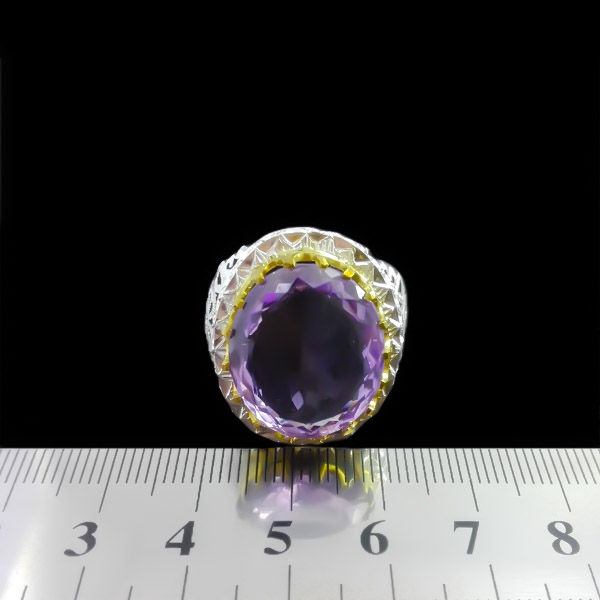 انگشتر آمیتیست الماس تراش نقره مردانه دست ساز فاخر طرح آرتا