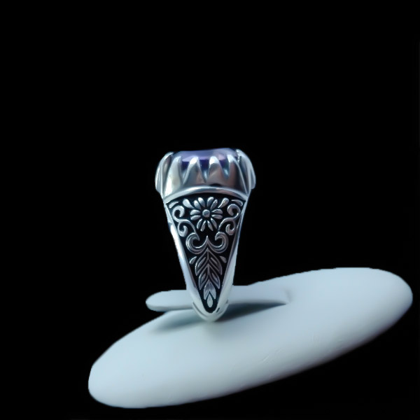 ۴- در مجموع این انگشتر بنفش یک محافظ و پاکساز روانی است. همچنین اگر شخصی بیمار باشد قرار دادن قطعه ای از این گوهر در کنار خود می تواند محیط روانی بدن فرد و سطوح انرژی را در سطحی از تعادل و بهزیستی نگه دارد.