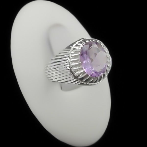 انگشتر آمیتیست الماس تراش نقره مردانه دست ساز طرح آذرتوس