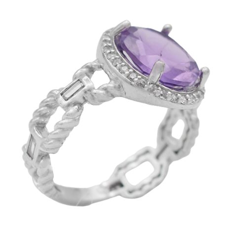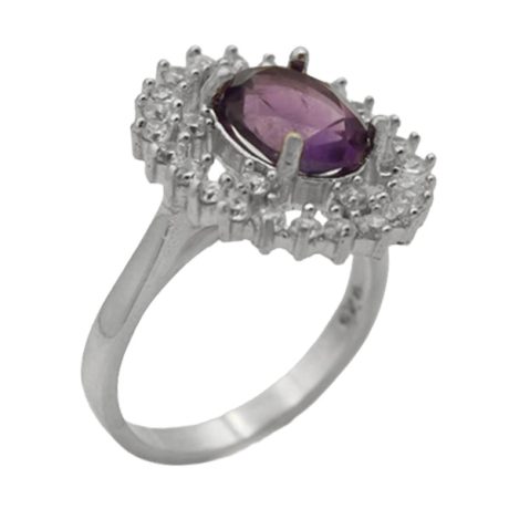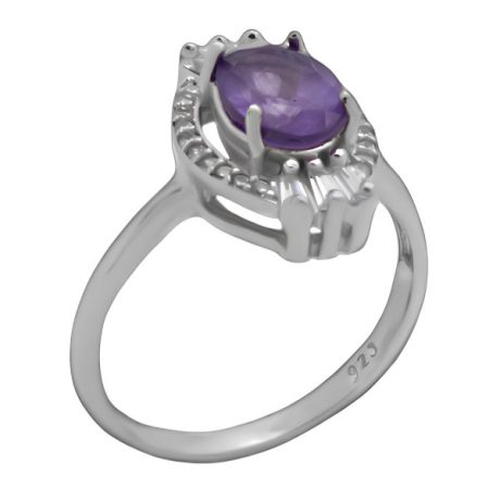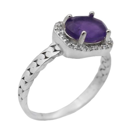 انگشتر آمیتیست الماس تراش نقره زنانه طرح بنیتا