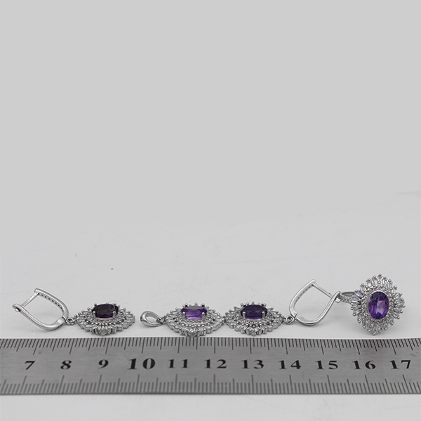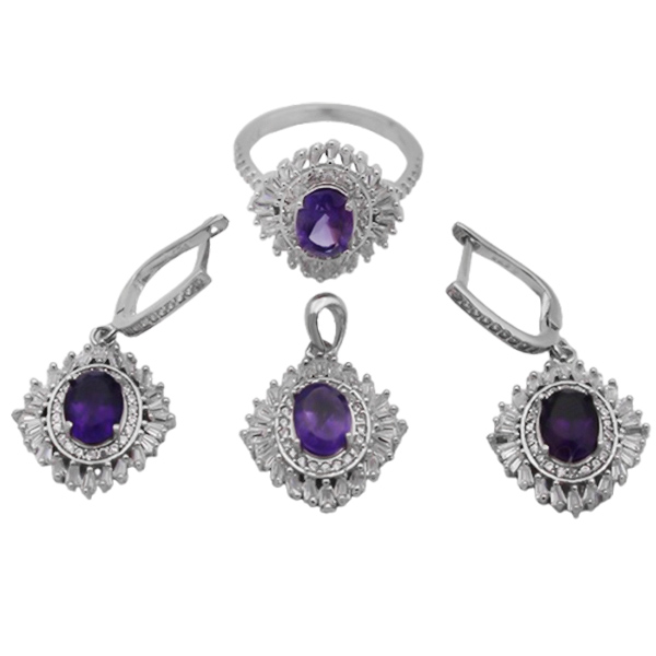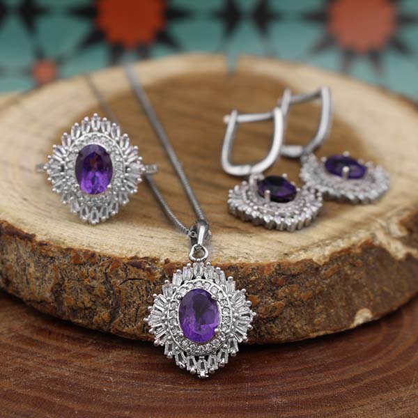 نیم ست آمیتیست الماس تراش نقره زنانه طرح دریا