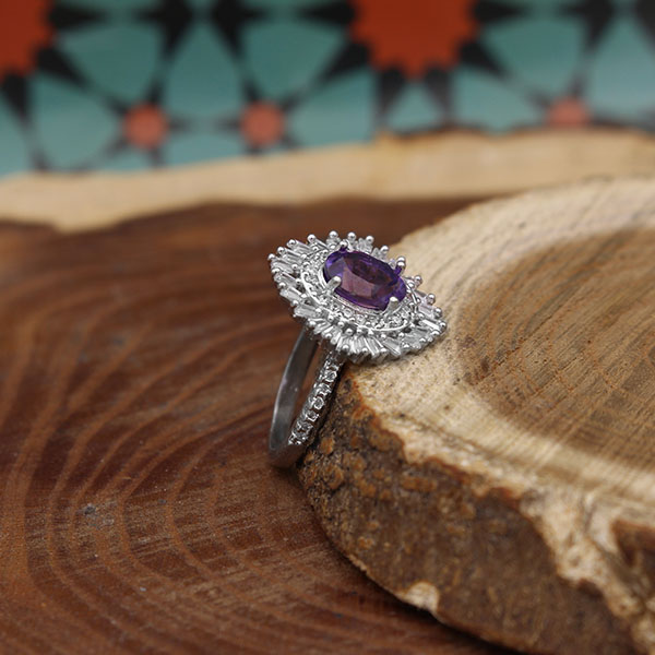 ۴- در مجموع این انگشتر بنفش یک محافظ و پاکساز روانی است. همچنین اگر شخصی بیمار باشد قرار دادن قطعه ای از این گوهر در کنار خود می تواند محیط روانی بدن فرد و سطوح انرژی را در سطحی از تعادل و بهزیستی نگه دارد.