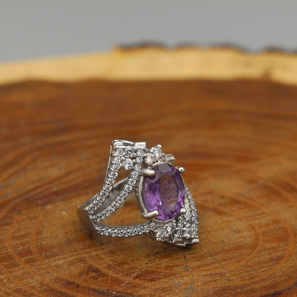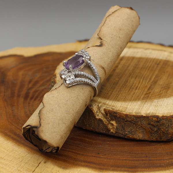 انگشتر آمیتیست نقره زنانه طرح دایانا