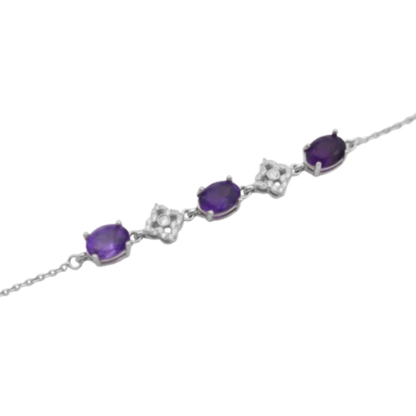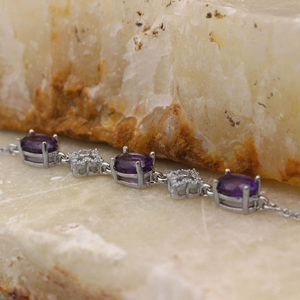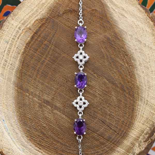 دستبند آمیتیست الماس تراش نقره زنانه طرح دیبا