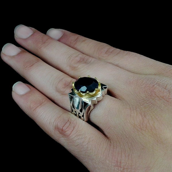 انگشتر آمیتیست الماس تراش نقره مردانه دست ساز فاخر طرح هوشیار