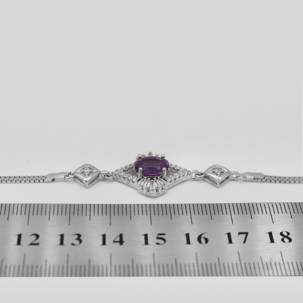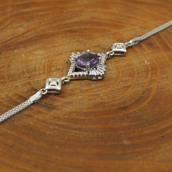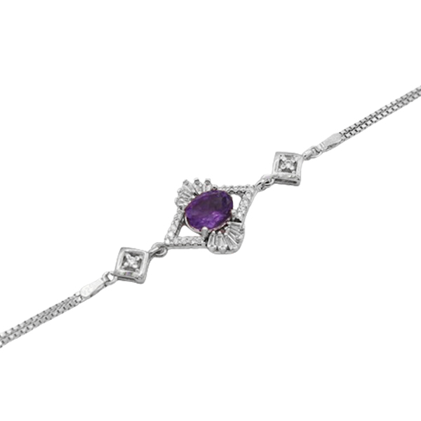 دستبند آمیتیست الماس تراش نقره زنانه طرح حوریه