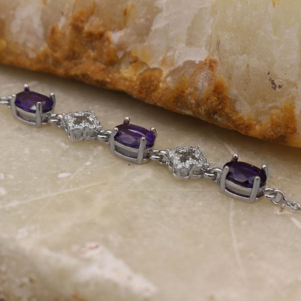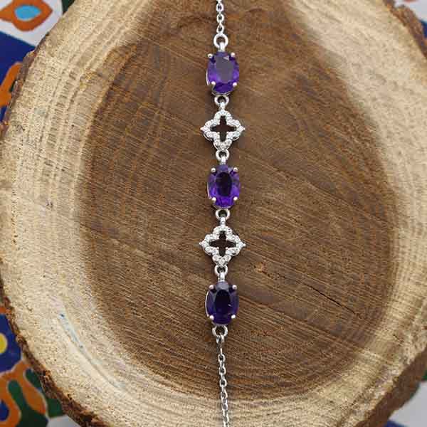 دستبند آمیتیست الماس تراش نقره زنانه طرح کیانا