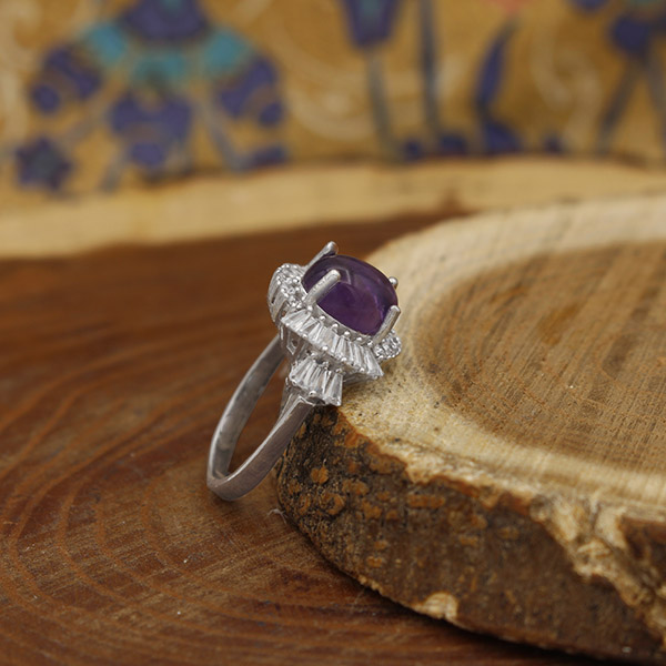 ۴- در مجموع این انگشتر بنفش یک محافظ و پاکساز روانی است. همچنین اگر شخصی بیمار باشد قرار دادن قطعه ای از این گوهر در کنار خود می تواند محیط روانی بدن فرد و سطوح انرژی را در سطحی از تعادل و بهزیستی نگه دارد.