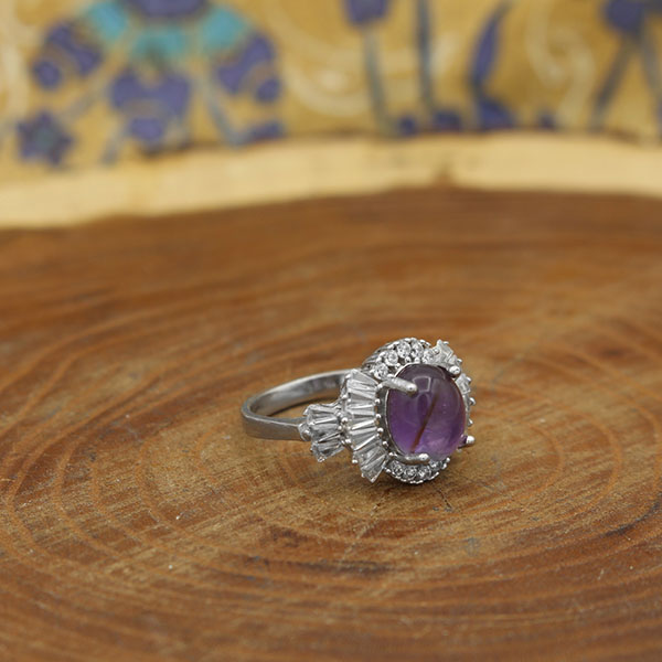انگشتر آمیتیست الماس تراش نقره زنانه طرح لیلی