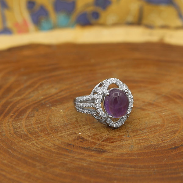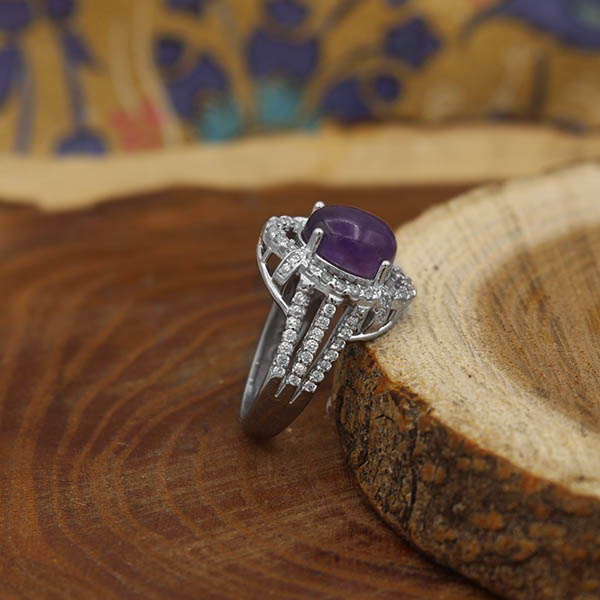 ۴- در مجموع این انگشتر بنفش یک محافظ و پاکساز روانی است. همچنین اگر شخصی بیمار باشد قرار دادن قطعه ای از این گوهر در کنار خود می تواند محیط روانی بدن فرد و سطوح انرژی را در سطحی از تعادل و بهزیستی نگه دارد.