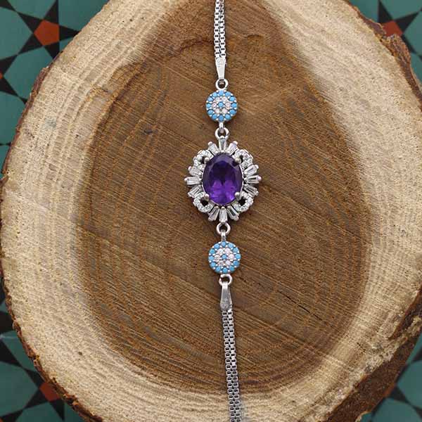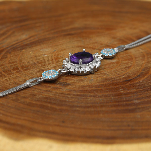 دستبند آمیتیست الماس تراش نقره زنانه طرح مانیا