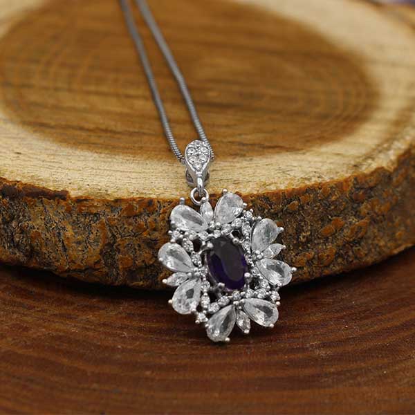 گردنبند آمیتیست الماس تراش نقره زنانه طرح مانیا