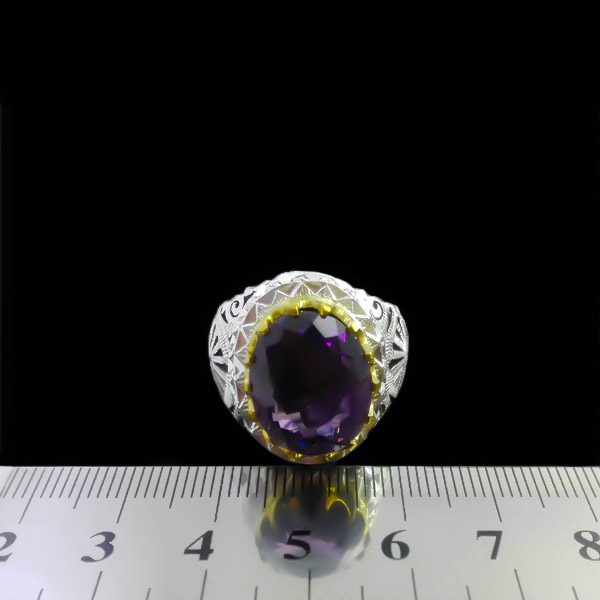انگشتر آمیتیست الماس تراش نقره مردانه دست ساز فاخر طرح میلاد
