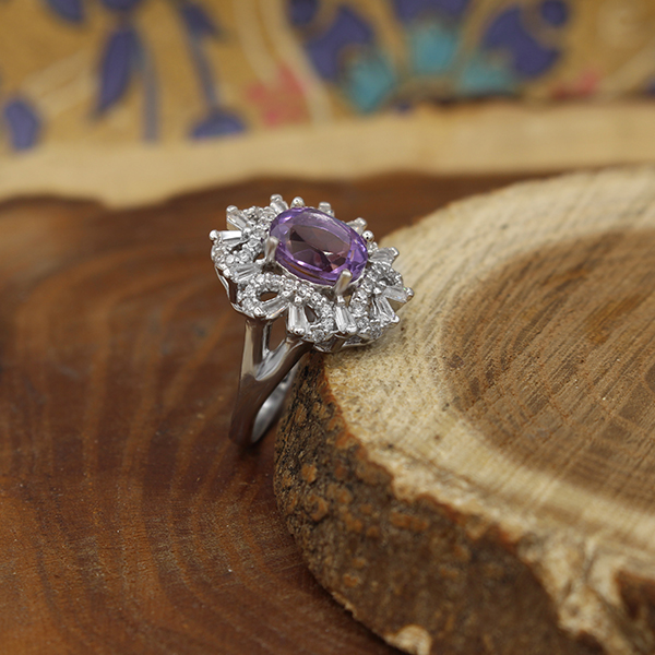 انگشتر آمیتیست نقره زنانه طرح مونا