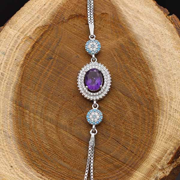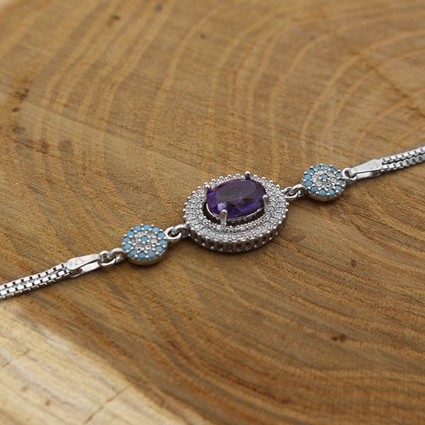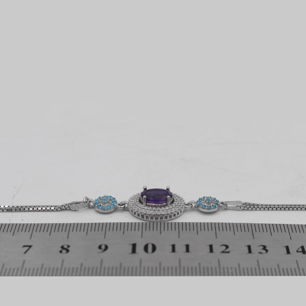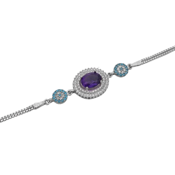 دستبند آمیتیست الماس تراش نقره زنانه طرح نگار
