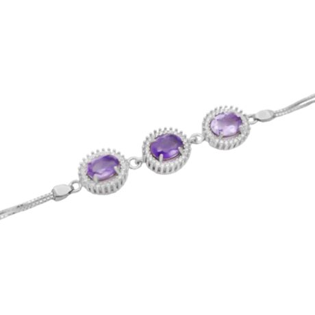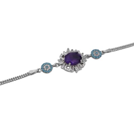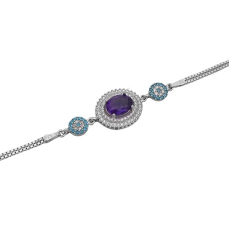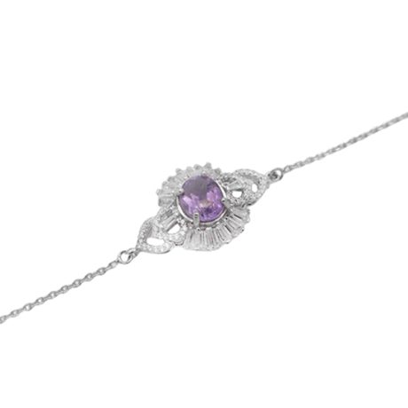 دستبند آمیتیست الماس تراش نقره زنانه طرح نیلا