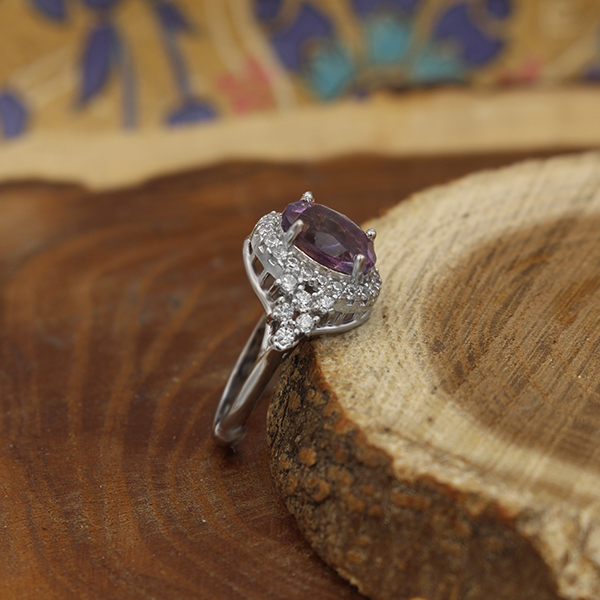 ۴- در مجموع این انگشتر بنفش یک محافظ و پاکساز روانی است. همچنین اگر شخصی بیمار باشد قرار دادن قطعه ای از این گوهر در کنار خود می تواند محیط روانی بدن فرد و سطوح انرژی را در سطحی از تعادل و بهزیستی نگه دارد.