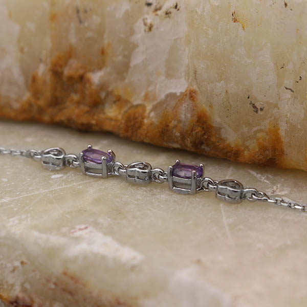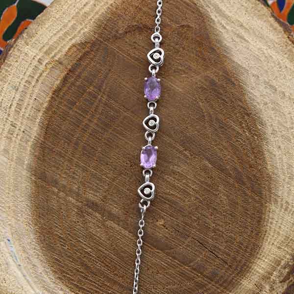 دستبند آمیتیست الماس تراش نقره زنانه طرح رسا