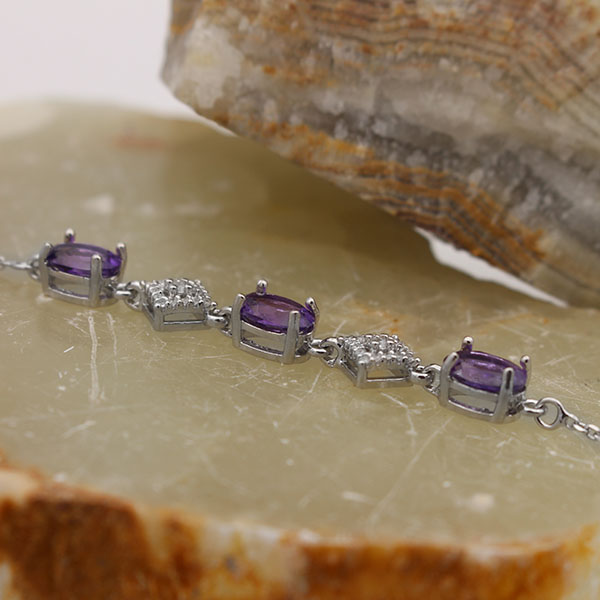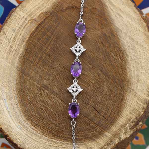 دستبند آمیتیست الماس تراش نقره زنانه طرح ساحل