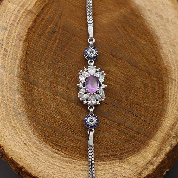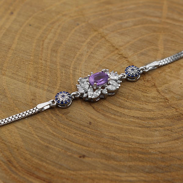 دستبند آمیتیست الماس تراش نقره زنانه طرح سمانه