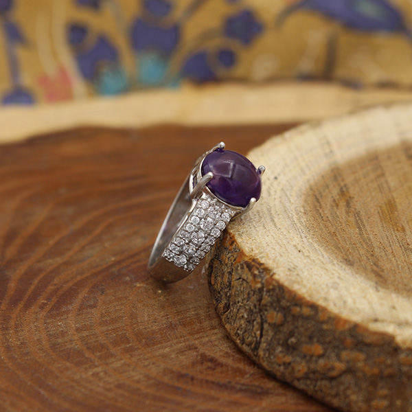 ۴- در مجموع این انگشتر بنفش یک محافظ و پاکساز روانی است. همچنین اگر شخصی بیمار باشد قرار دادن قطعه ای از این گوهر در کنار خود می تواند محیط روانی بدن فرد و سطوح انرژی را در سطحی از تعادل و بهزیستی نگه دارد.