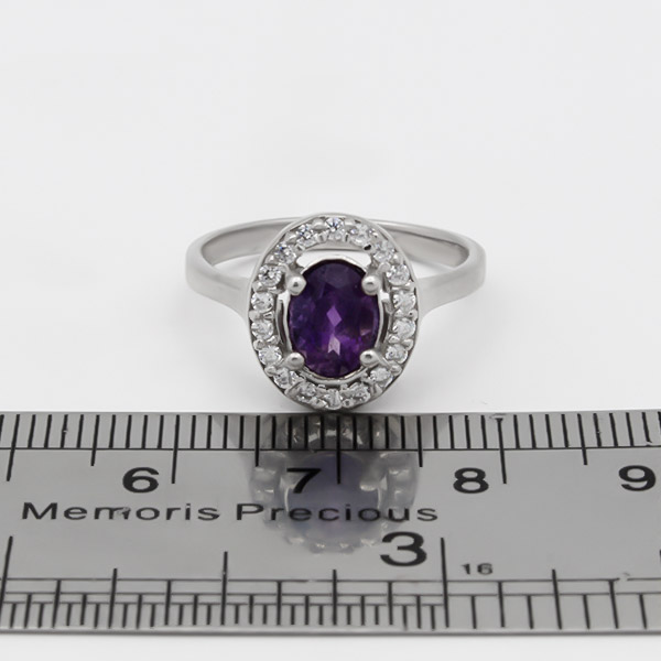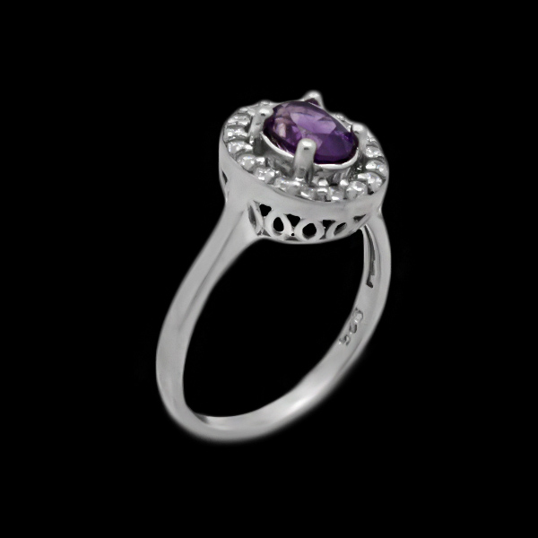 انگشتر آمیتیست الماس تراش نقره زنانه طرح ساتین
