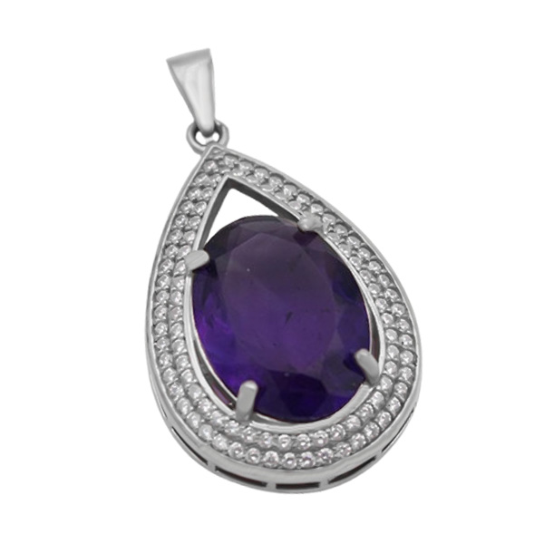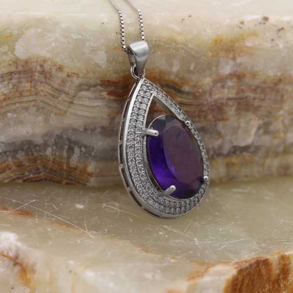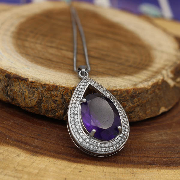گردنبند آمیتیست الماس تراش نقره زنانه طرح یاقوت