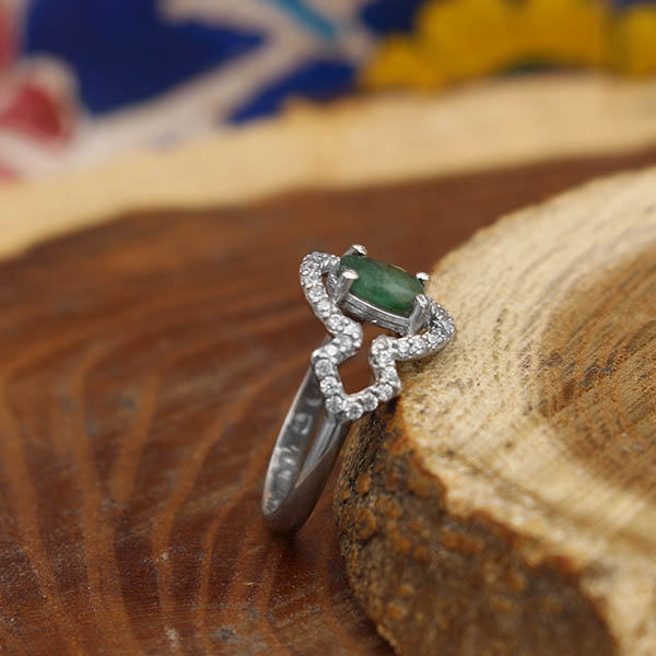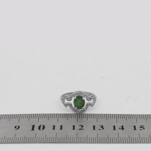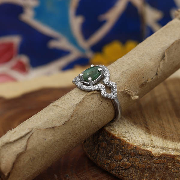 انگشتر زمرد الماس تراش نقره زنانه طرح آرامیس