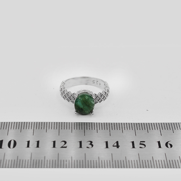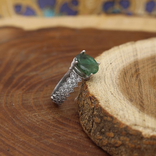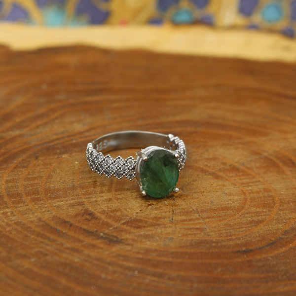 انگشتر زمرد الماس تراش نقره زنانه طرح آرزو