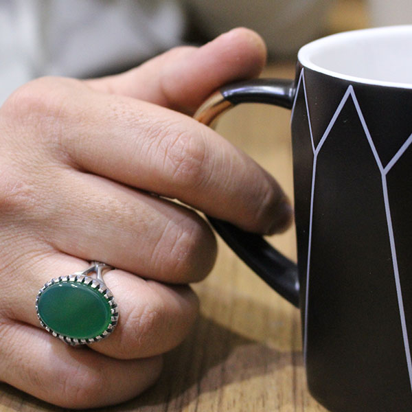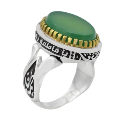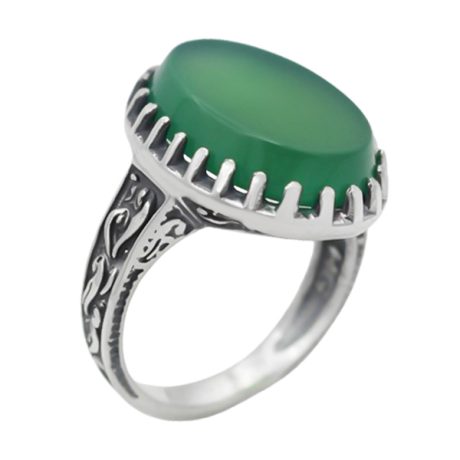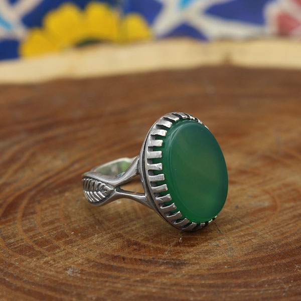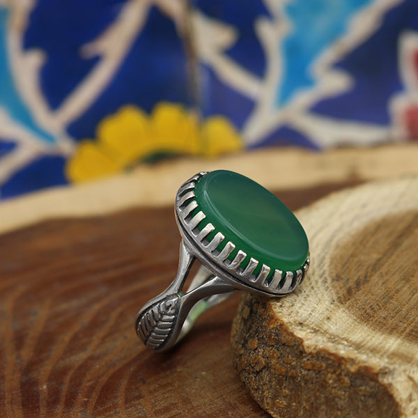 انگشتر عقیق سبز نقره مردانه طرح ارج