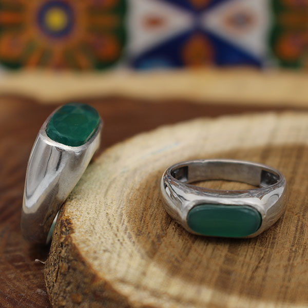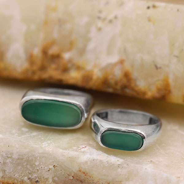 انگشتر ست عقیق سبز نقره مردانه و زنانه طرح آریا