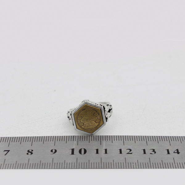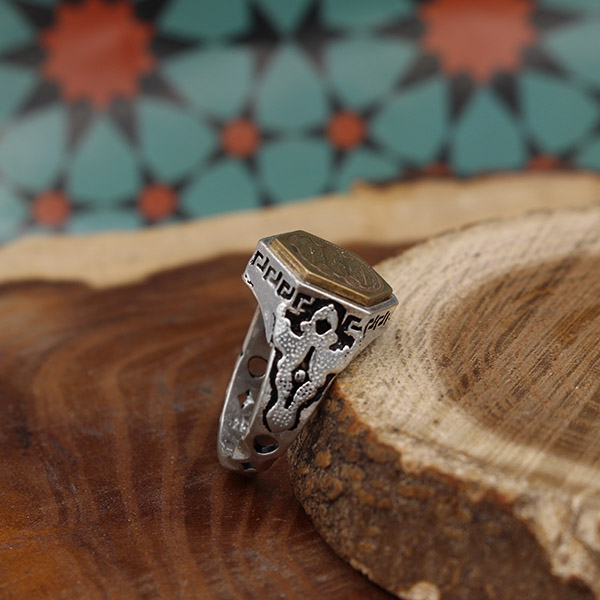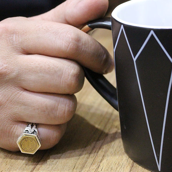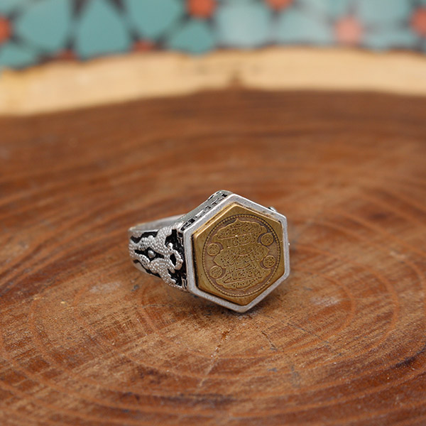 انگشتر حرز امام جواد (ع) نقره مردانه و زنانه طرح شش ضلعی آیت الکرسی 3 + تربت امام حسین (ع)