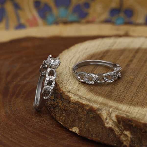 در کنار انواع حلقه سنگی که تماما از سنگ ساخته شده‌اند، طراحی‌های بسیار خاص و مدرن و تنوع بسیار بالای انواع حلقه نقره نیز وجود دارد که قطعا هر سلیقه‌ای را قانع خواهد کرد که یکی از این حلقه های بینظیر را داشته باشد. استفاده از نقره در این حلقه ها و آبکاری طلا سفید و طلا زرد روی آن باعث اصالت محصول و ماندگاری آن تا سالیان سال شده‌است. امروزه رسم است که این حلقه نقره را به عنوان هدیه خواستگاری خریداری کنند. مطمئن باشید این شیوه خواستگاری کردن و این مدل حلقه بسیار دلبر شما را شگفت ‎زده خواهد کرد. قطعا پیشنهاد ازدواج به کسی که از صمیم قلب دوستش داریم یکی از بهترین و هیجان انگیز ترین رویدادها در زندگی ما خواهد بود. برای همین است که همه در تلاشند به بهترین نحو ممکن این پیشنهاد ویژه را بدهند و سربلند و پیروز با گرفتن جواب "آری" از میدان بیرون بیایند ازین رو هدیه دادن این نوع حلقه نقره و یا طلا و مخصوصا حلقه‌های مخصوصی که به نام حلقه ست نقره معروفند بسیار رواج دارد.