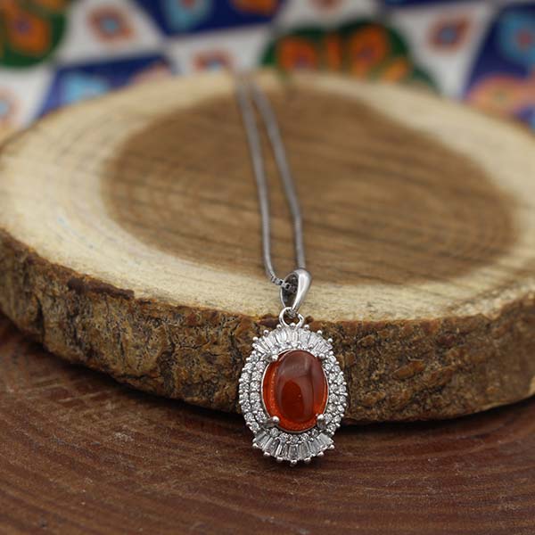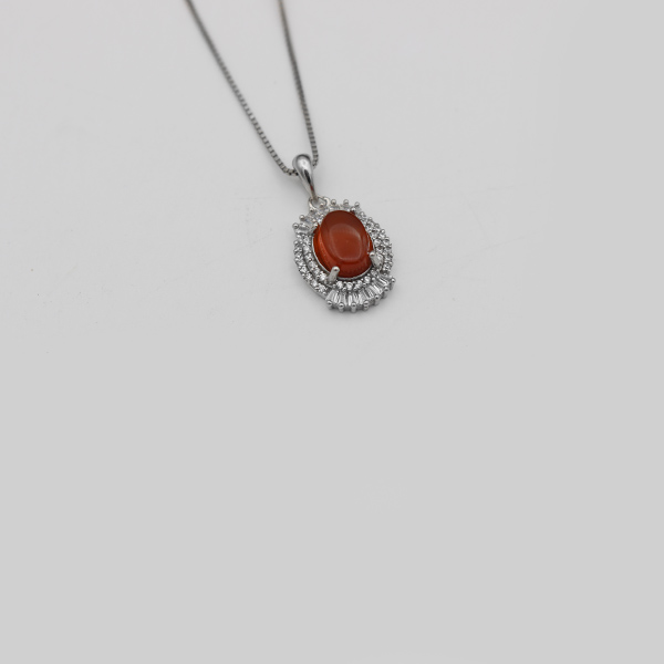 گردنبند عقیق سرخ یمنی نقره زنانه طرح اعظم