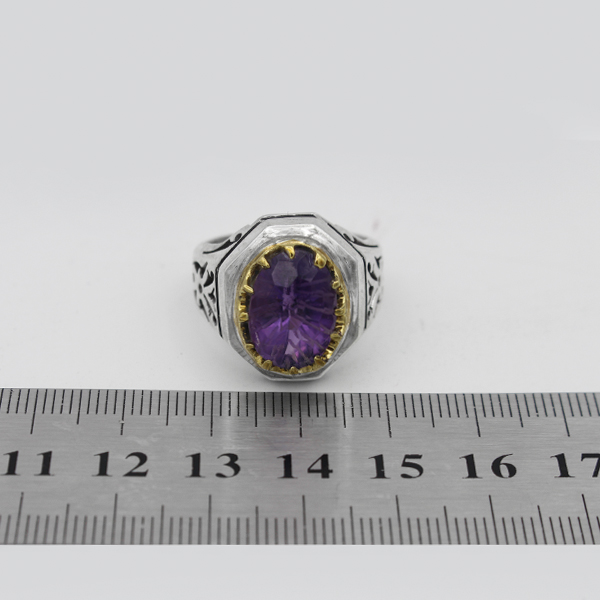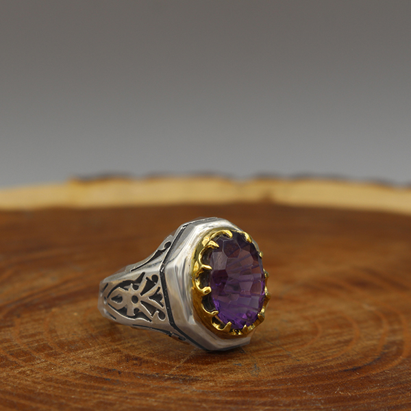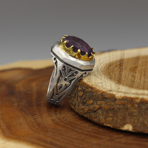 انگشتر آمیتیست نقره مردانه دست ساز طرح آذرخش