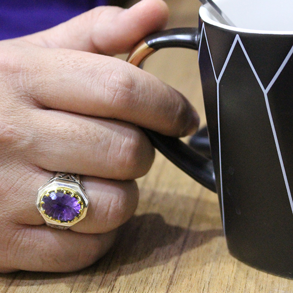 ۴- در مجموع این انگشتر بنفش یک محافظ و پاکساز روانی است. همچنین اگر شخصی بیمار باشد قرار دادن قطعه ای از این گوهر در کنار خود می تواند محیط روانی بدن فرد و سطوح انرژی را در سطحی از تعادل و بهزیستی نگه دارد.