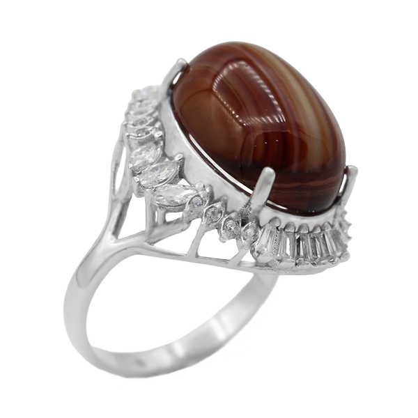انگشتر عقیق سلیمانی نقره زنانه طرح آدینه