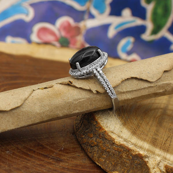 انگشتر عقیق سلیمانی نقره زنانه طرح آسمان