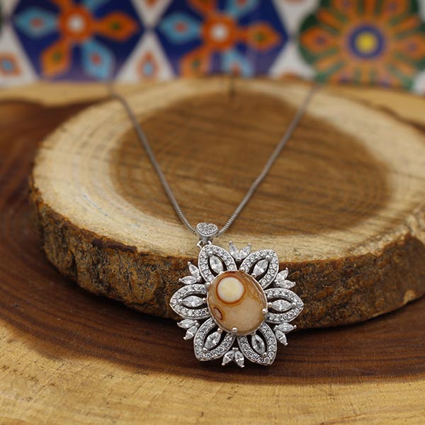گردنبند عقیق باباقوری نقره زنانه طرح عاطفه