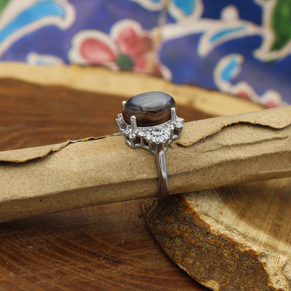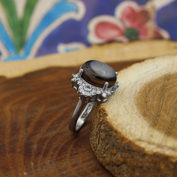 انگشتر عقیق سلیمانی نقره زنانه طرح عشرت