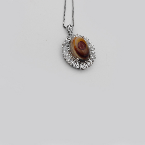 گردنبند عقیق باباقوری نقره زنانه طرح گلسا