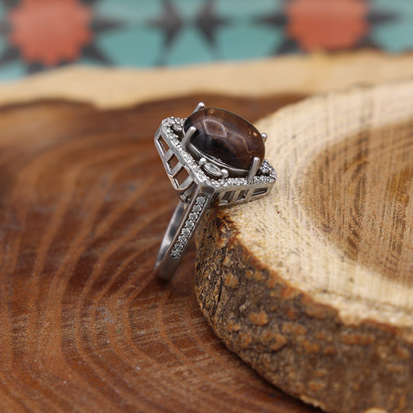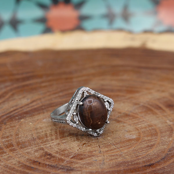 انگشتر عقیق سلیمانی نقره زنانه طرح هنگامه
