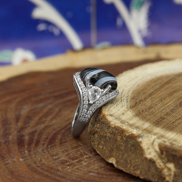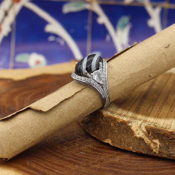 انگشتر عقیق سلیمانی نقره زنانه طرح لیلا