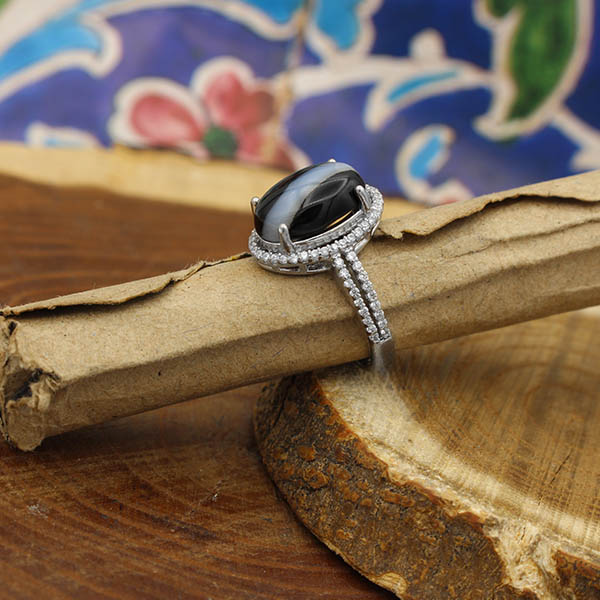 انگشتر عقیق سلیمانی نقره زنانه طرح مهسان
